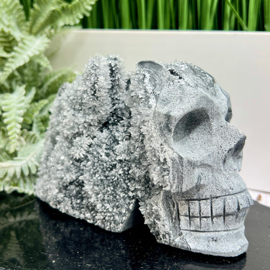 Black Quartz Calcite Skull UV Reactive Large Druzy Crystal 1014g