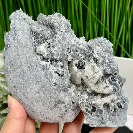 Black Quartz Calcite Skull UV Reactive Large Druzy Crystal 640g