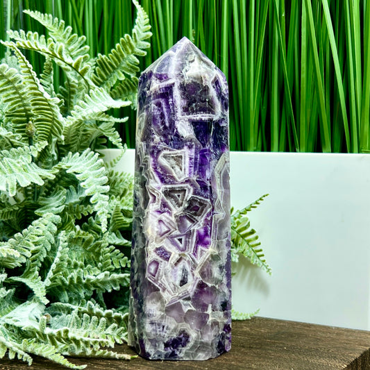Chevron Dream Amethyst Tower Healing Crystal Generator 576g 153mm