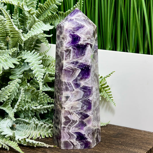 Chevron Dream Amethyst Tower Healing Crystal Generator 532g 153mm