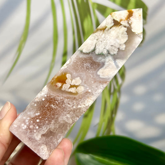 Pink Amethyst Flower Agate Tower Healing Crystal Generator 137g
