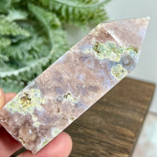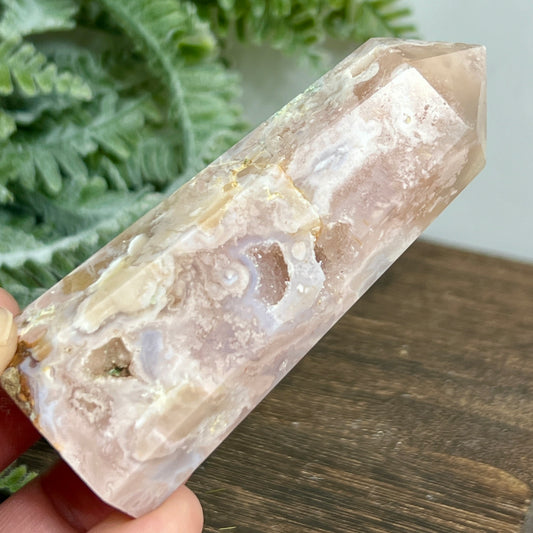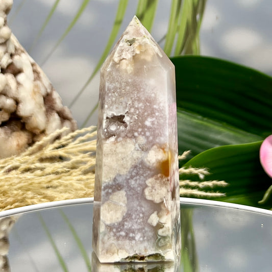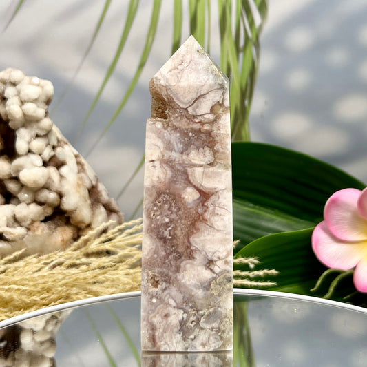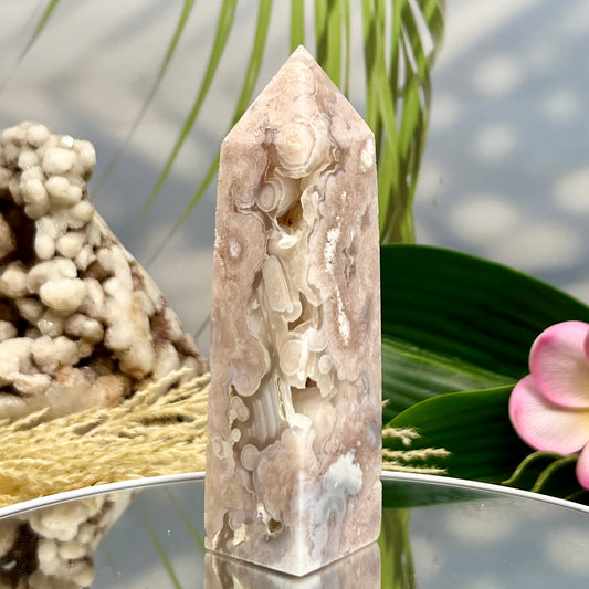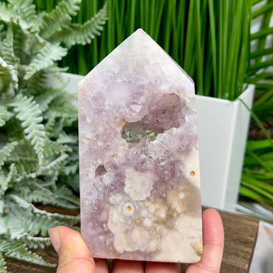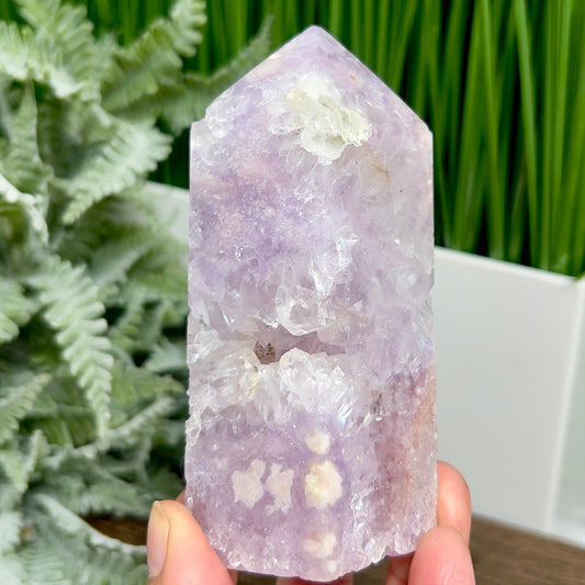 Pink Amethyst Flower Agate Tower Healing Crystal Generator 107g 81mm