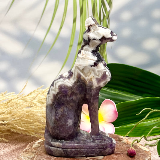 Chevron Dream Amethyst Egyptian Cat Healing Crystal Ancient Animal Carving 480g
