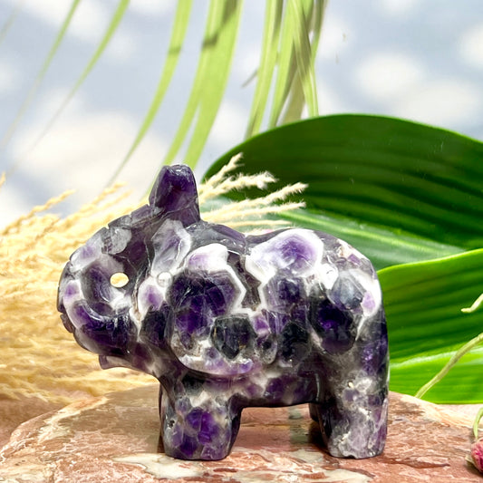 Chevron Dream Amethyst Healing Elephant Crystal Animal Carving 255g
