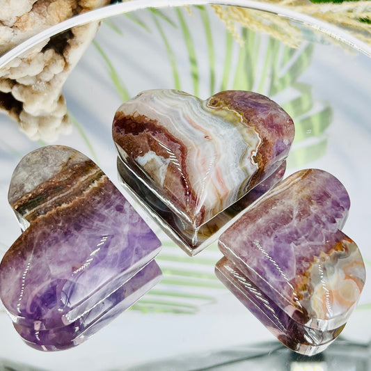 Amethyst with Mexican Lace Agate Hearts Crystal Carving YOU CHOOSE