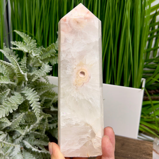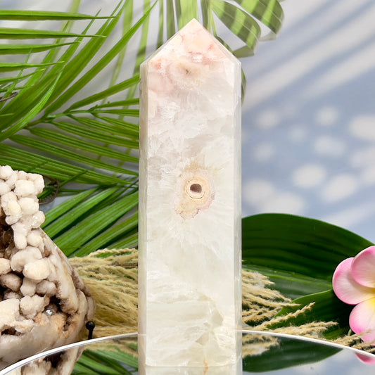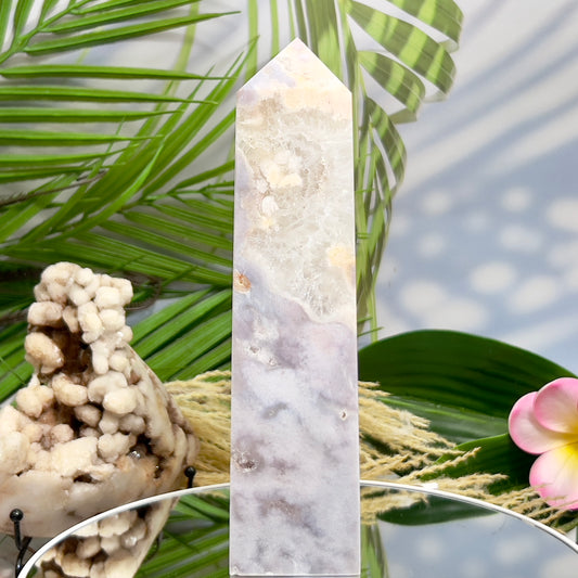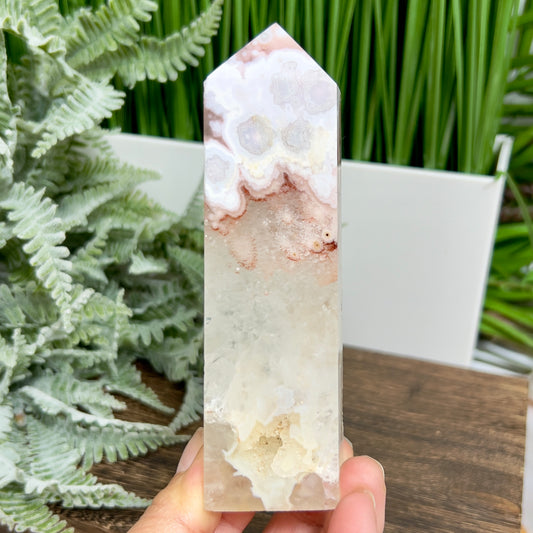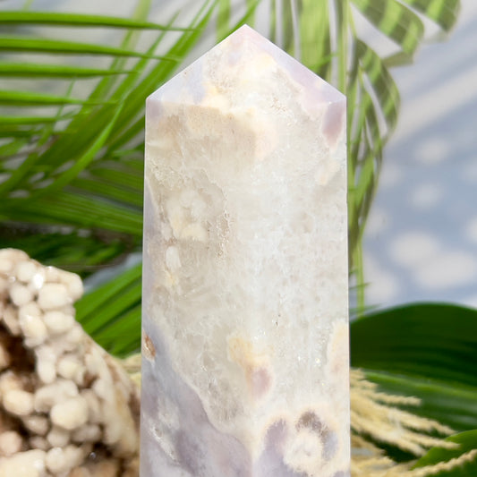 Pink Amethyst Flower Agate Quartz Tower Healing Crystal Generator 258g 129mm