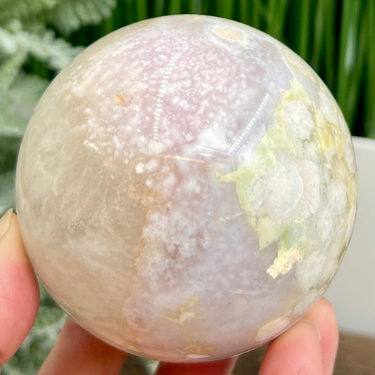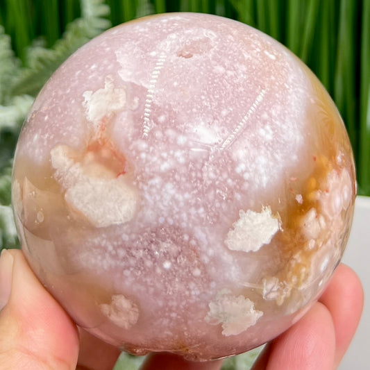 Pink Amethyst Flower Agate Sphere Healing Crystal Ball 658g 79mm