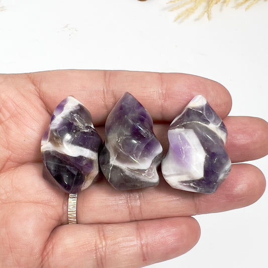 Chevron Dream Amethyst Flames Healing Crystal Carving 3 Pieces