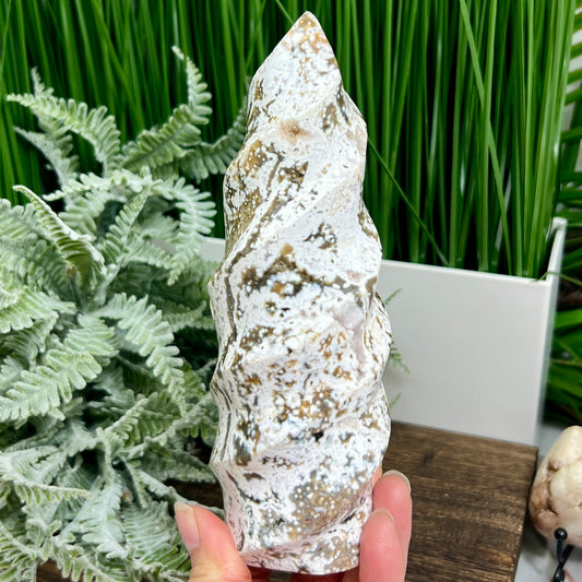 Ocean Sea Jasper Free Form Flame Crystal Carving 748g