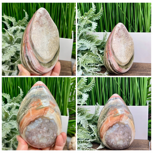 Ocean Sea Jasper with Quartz Free Form Flame Crystal Carving 826g