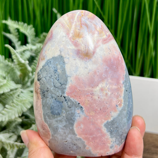 Ocean Sea Jasper Pink Free Form Flame Crystal Carving 722g