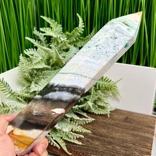 Ocean Sea Jasper Tower Healing Crystal Generator 592g 202mm