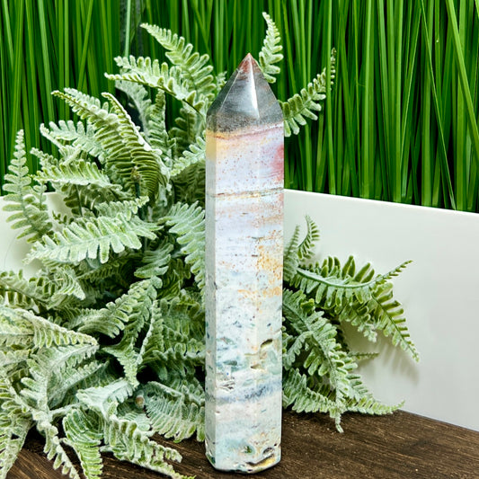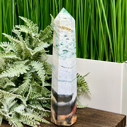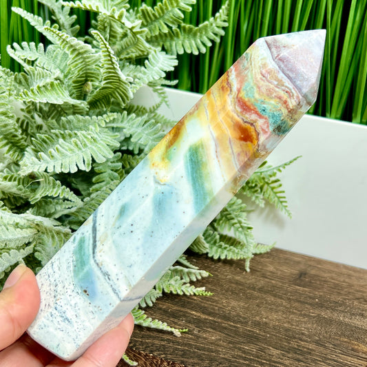 Ocean Sea Jasper Tower Healing Crystal Generator 524g 201mm