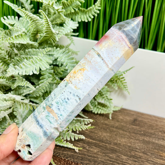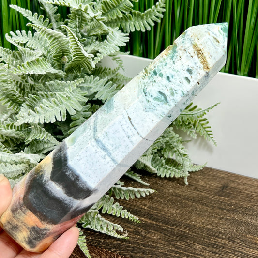 Ocean Sea Jasper Tower Healing Crystal Generator 660g 225mm