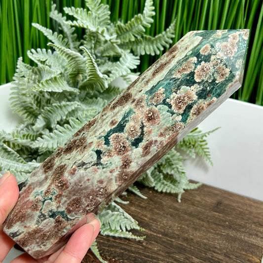Russian Flower Cherry Blossom Jasper Tower Healing Crystal Generator 546g 202mm