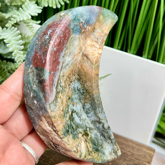 Ocean Sea Jasper Moon Crescent Bowl Healing Crystal Carving 304g