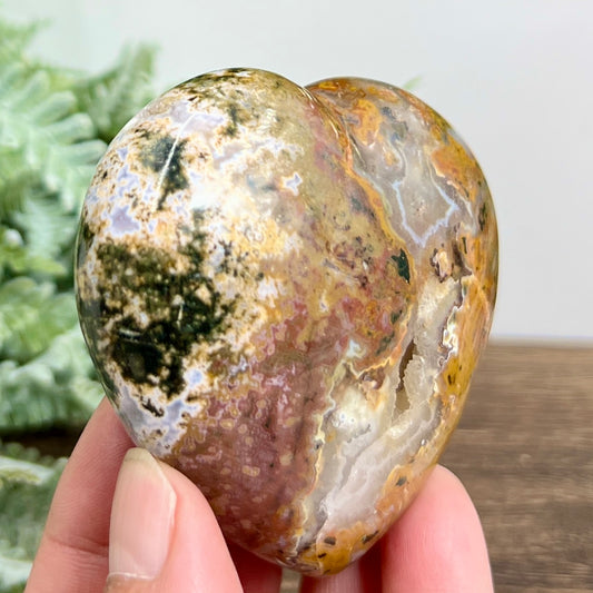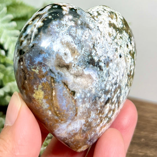 Bubble Sea Ocean Orbicular Jasper Heart Crystal Carving 184g