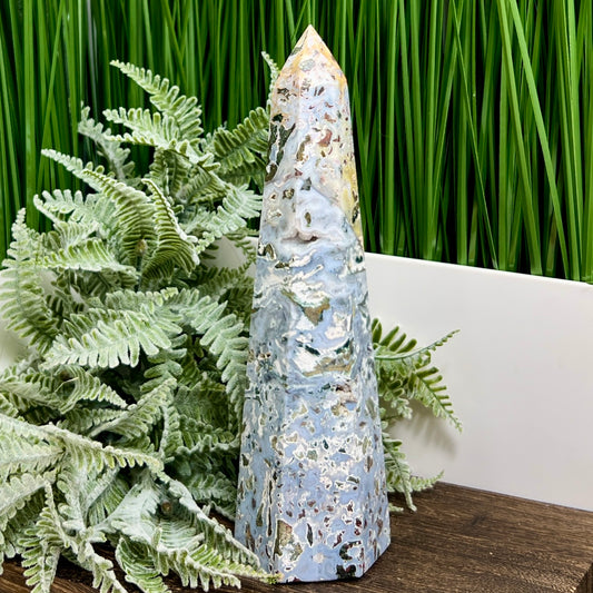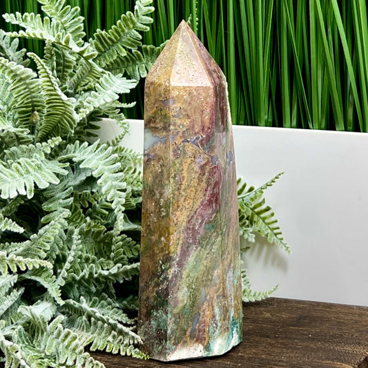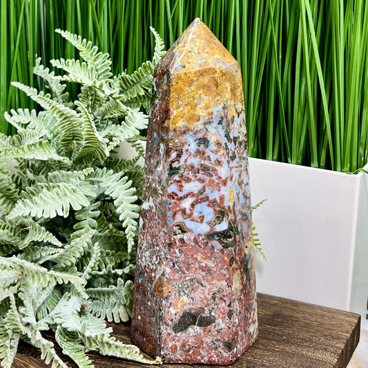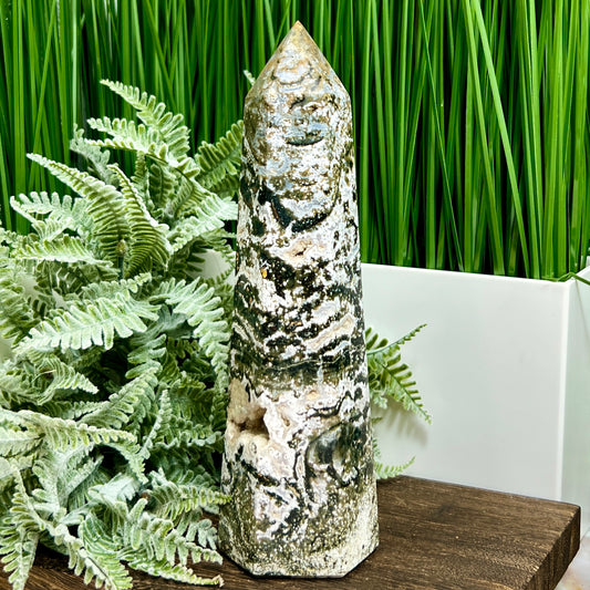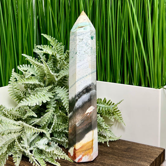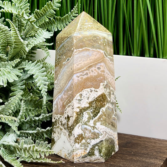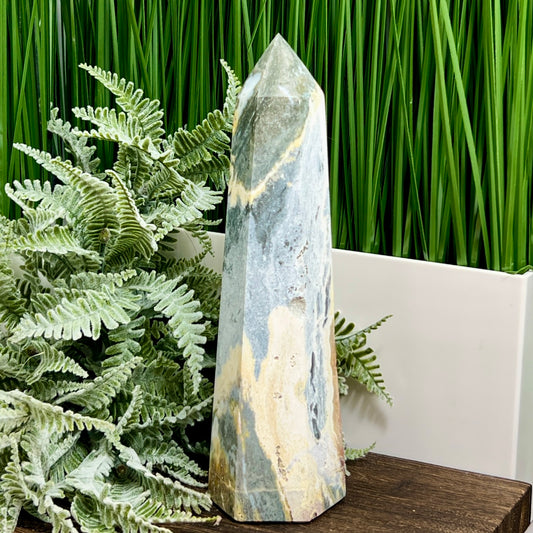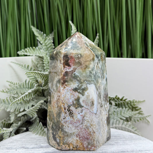 Ocean Sea Jasper Tower Healing Crystal Generator 660g 225mm