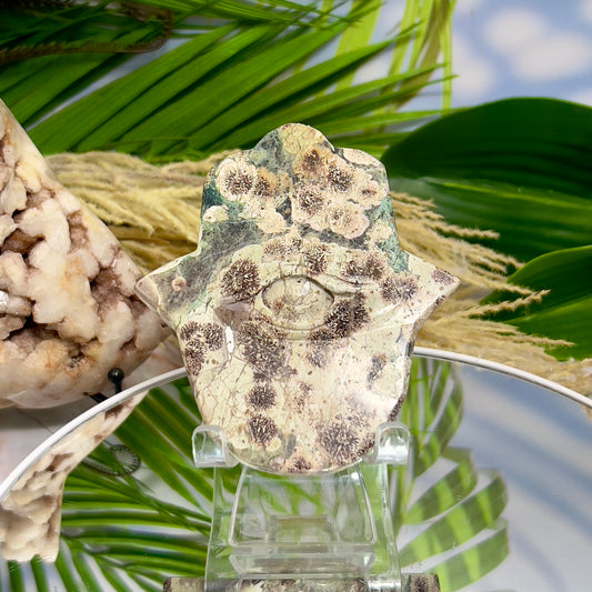 Russian Flower Cherry Blossom Jasper Hamsa of Fatima Miriam with Eye Lucky Crystal Carving