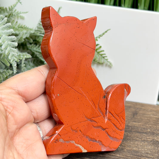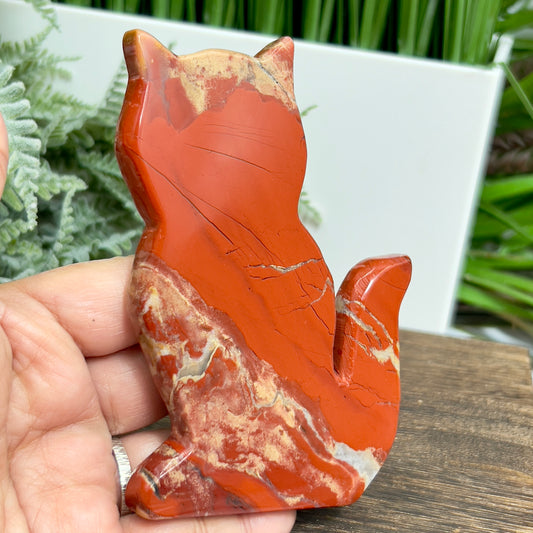 Red Jasper Kitty Cat Healing Crystal Animal Carving 198g