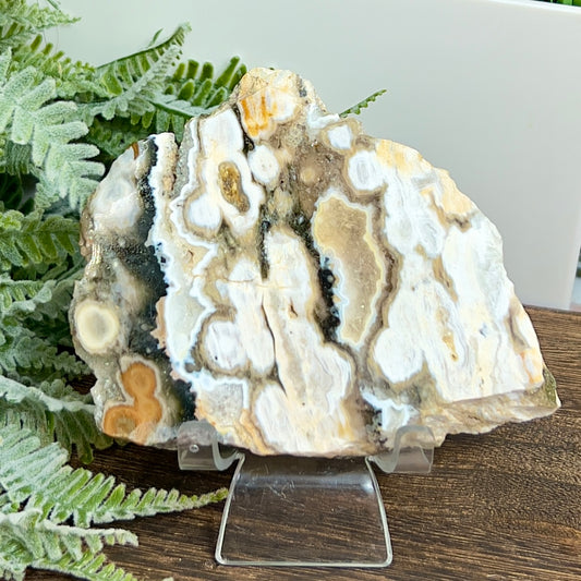 Bubble Ocean Orbicular Sea Jasper Raw Slice with Stand Natural Crystal Specimen 286g