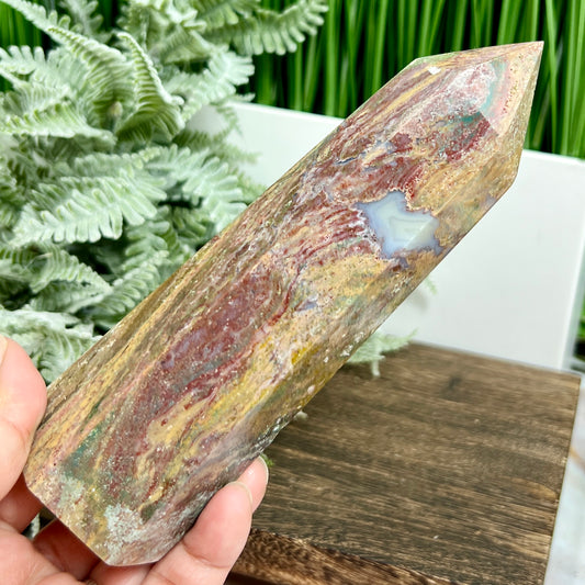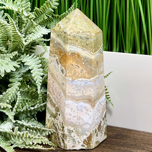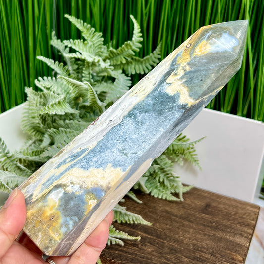 Ocean Sea Jasper Tower Healing Crystal Generator 556g 166mm