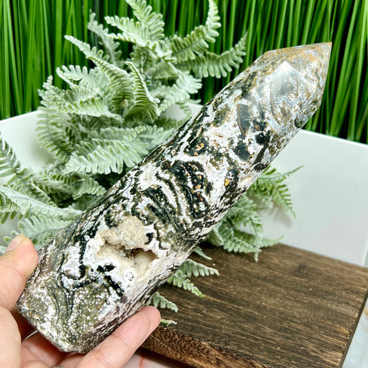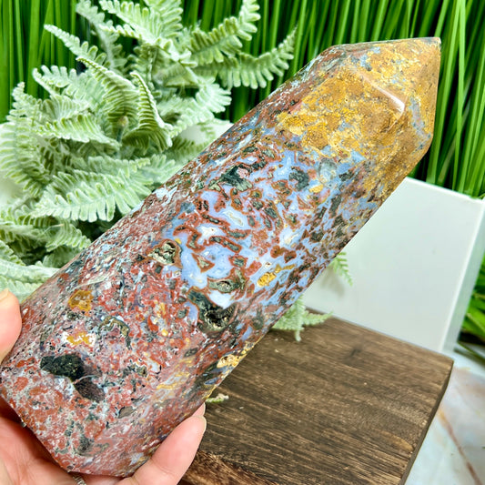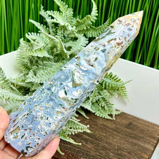 Ocean Sea Jasper Tower Healing Crystal Generator 680g 189mm