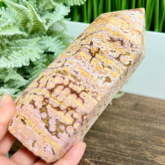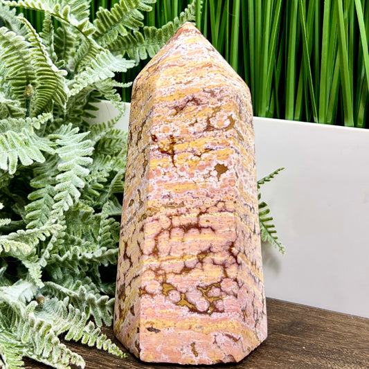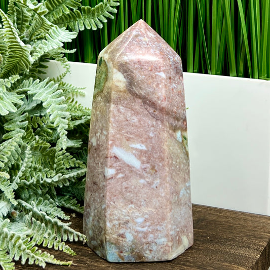 Ocean Sea Pink Orbicular Jasper Tower Healing Crystal Generator 864g 151mm