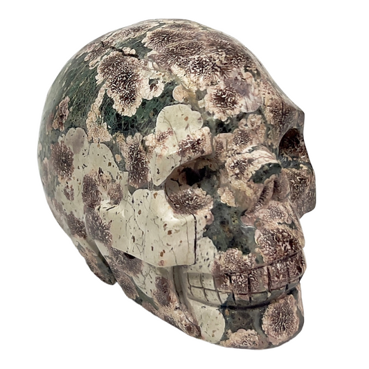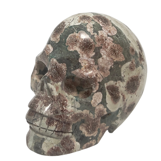 Russian Flower Cherry Blossom Jasper Skull Healing Crystal Carving 520g