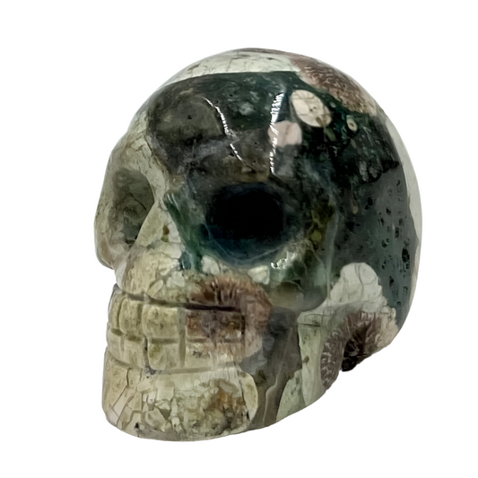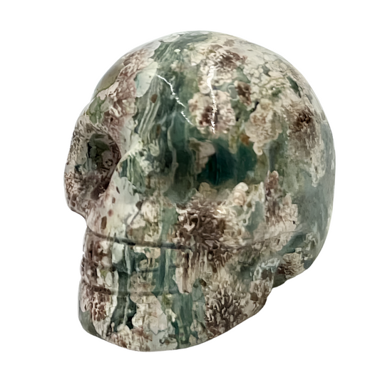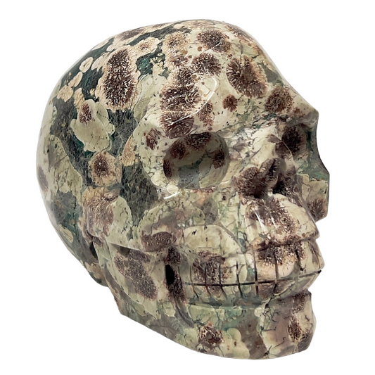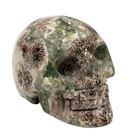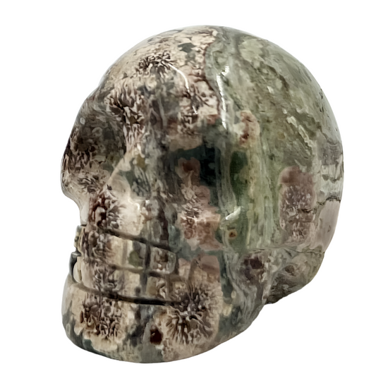 Russian Flower Cherry Blossom Jasper Skull 2 Inches Hand Carved Crystal Carving