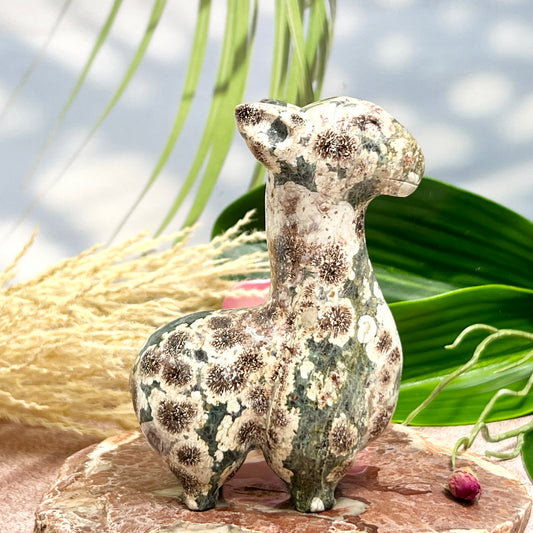 Russian Flower Cherry Blossom Jasper Llama Alpaca Crystal Animal Carving 404g