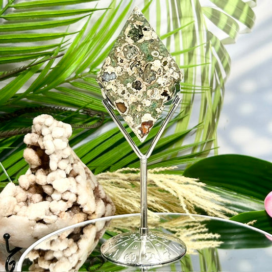 Rainforest Jasper Green Rhyolite Rhombus Display with Stand Healing Crystal Carving