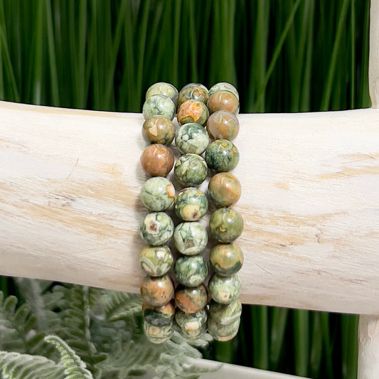 Rainforest Jasper Rhyolite Crystals Bracelets Gemstones Elastic 8mm Beads 16cm