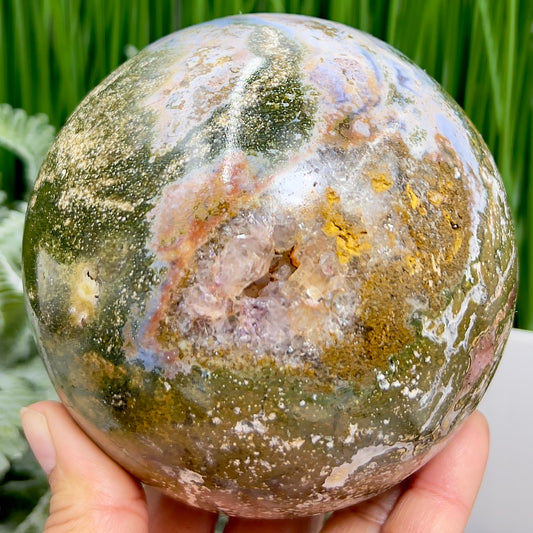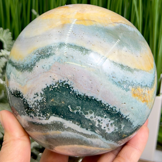 Ocean Sea Jasper Sphere Healing Crystal Ball 426g 67mm