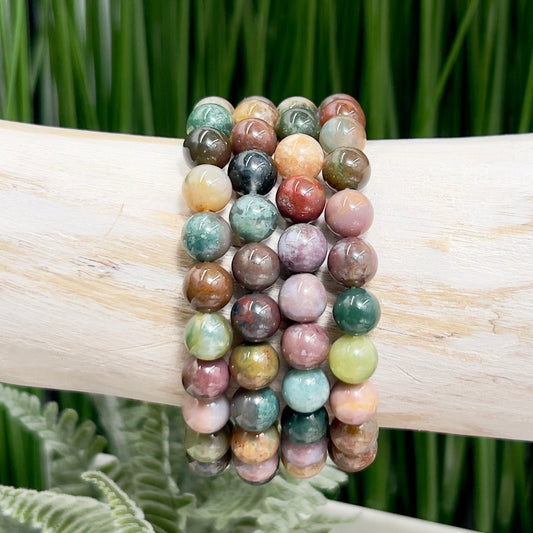Ocean Sea Jasper Crystals Bracelets Wearable Gemstones Elastic 7-8mm Beads 16cm