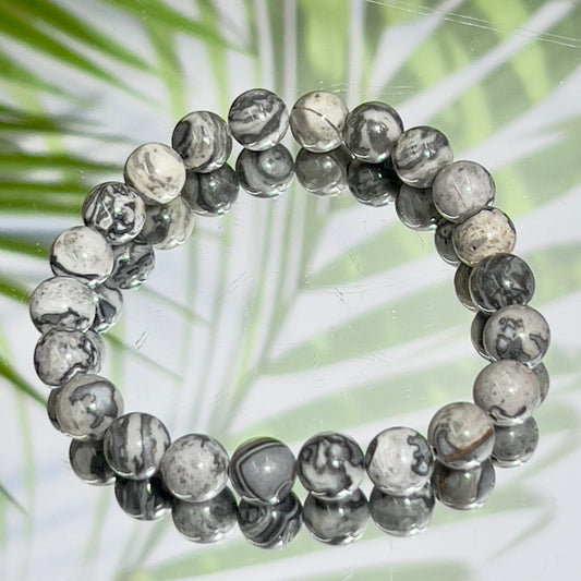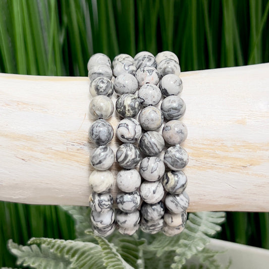 Picasso Jasper Stone Crystals Bracelets Wearable Gemstones Elastic 8mm Beads 15.5cm