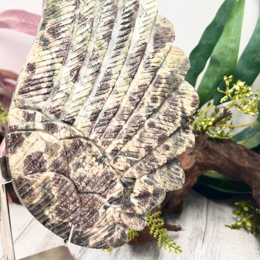 Russian Flower Cherry Blossom Jasper Angel Wings with Stand Rare Crystal Carving