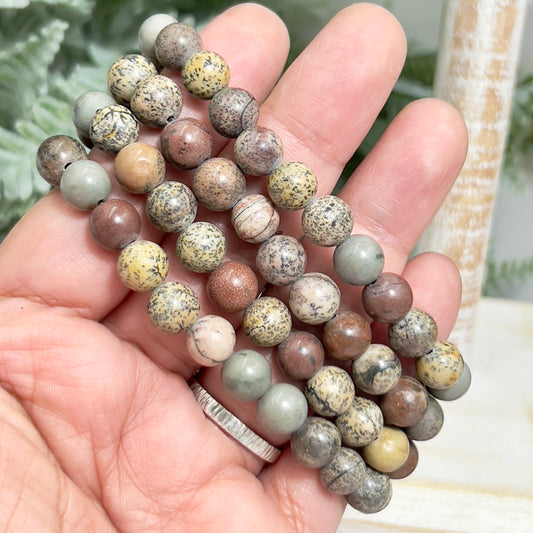 Dendritic Jasper Crystals Bracelets Wearable Gemstones Elastic 7-8mm Beads 16cm