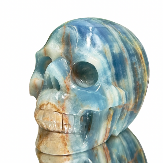 Blue Onyx Hollow Jaw Skull Healing Crystal Carving 1110g