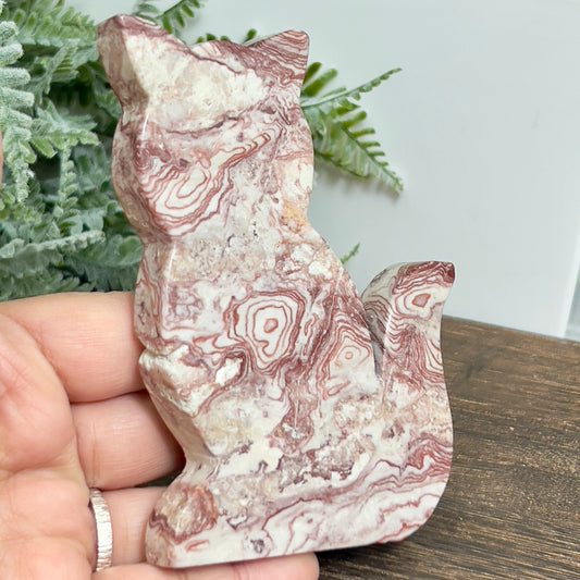 Red Onyx Cat Healing Crystal Animal Carving 178g