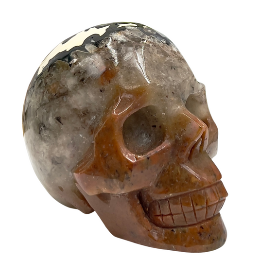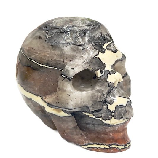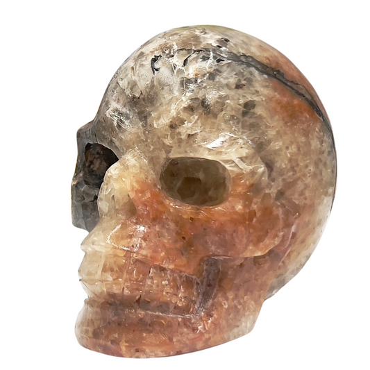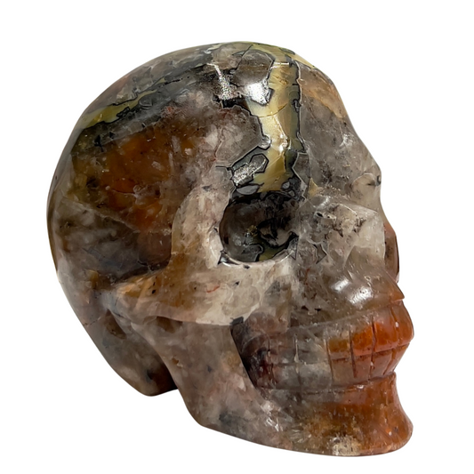 Mosaic Chalcedony Quartz Rare Skull Healing Crystal Carving 651g