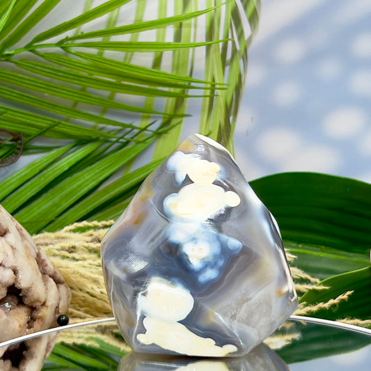 Orca Agate Ocean Agate Ocean Orbicular Agate With Quartz Flame Healing Crystal Carving 587g