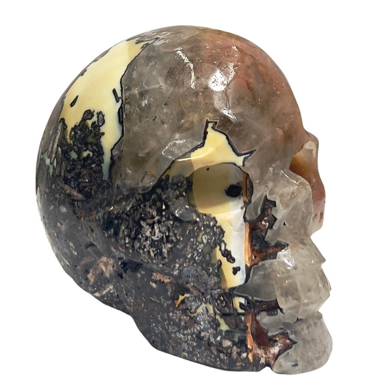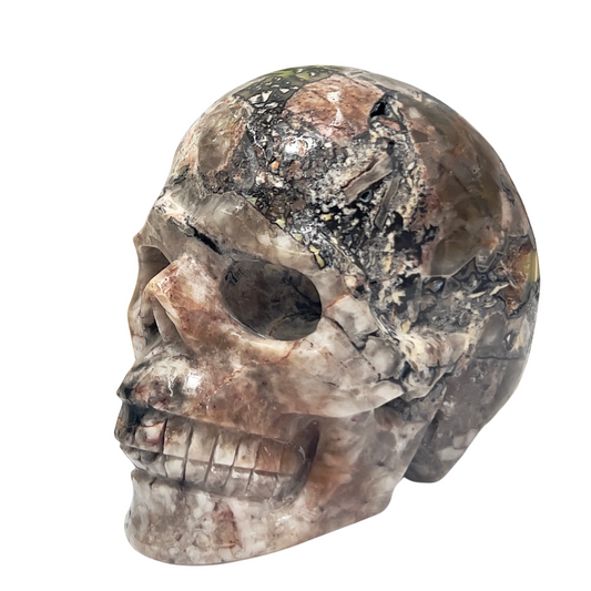 Mosaic Chalcedony Quartz Rare Skull Healing Crystal Carving 846g