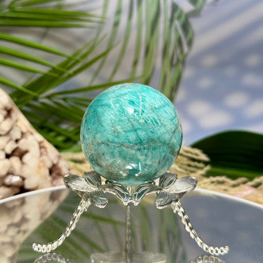 Amazonite with Smoky Quartz Sphere Healing Crystal Ball 350g 64mm Diameter