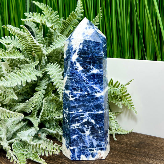 Sodalite Poets Stone Blue Tower Healing Crystal Generator 518g 151mm