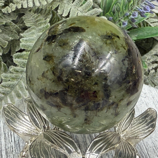 Prehnite with Epidote Sphere Healing Crystal Ball 267g 56mm