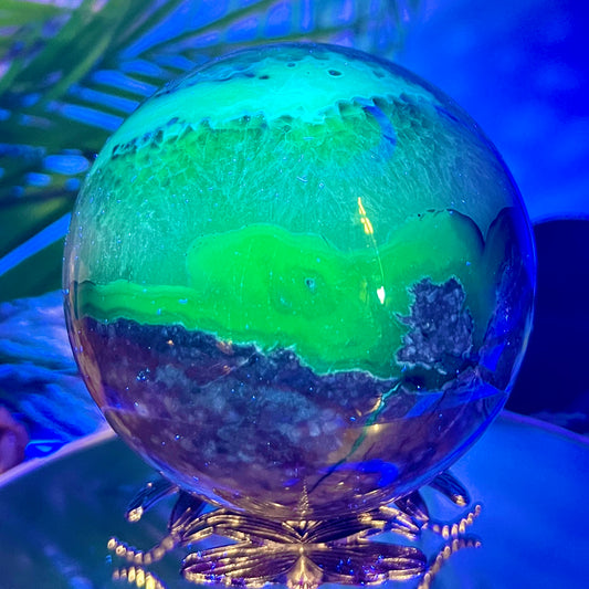 Volcanic Agate Quartz Sphere UV Reactive Large Crystal Ball 1447g 101mm