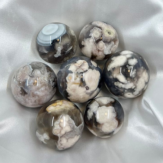 Black Flower Agate Mini Spheres Crystal Ball YOU CHOOSE