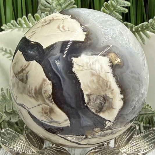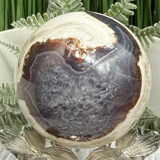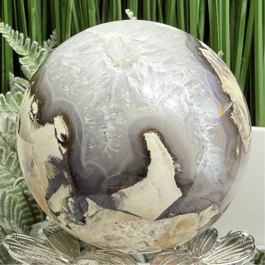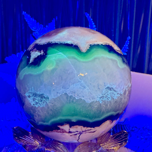 Volcanic Agate Quartz Sphere UV Reactive Crystal Ball 592g 75mm