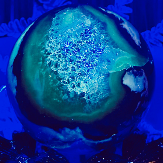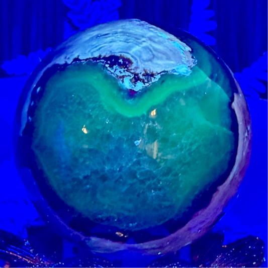 Volcanic Agate Quartz Sphere UV Reactive Crystal Ball 425g 68mm